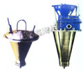 空氣經(jīng)過(guò)濾和加熱,進(jìn)入干燥器頂部空氣分配器,熱空氣呈螺旋狀均勻地進(jìn)入干燥室。料液經(jīng)塔體頂部的高速離心霧化器,(旋轉(zhuǎn))噴霧成細(xì)微的霧狀液珠,與熱空氣并流接觸在短的時(shí)間內(nèi)可干燥為成品。成品連續(xù)地由干燥塔底部和旋風(fēng)分離器中輸出,廢氣由風(fēng)機(jī)排空。