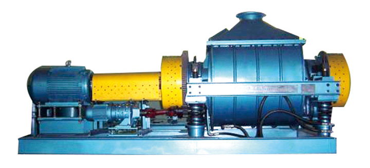 振動磨機是新型制粉設備,該機是利用圓筒的高頻振動,使筒體中的研磨介質(zhì)依靠慣性力沖擊物料,磨介通常為Φ16-Φ36mm的圓鋼,鋼棒經(jīng)過滲碳和淬火處理,硬度達到HRC55以上。入料粒度>15mm時取較大直徑,入料粒度<15mm時取較小直徑,并采用兩種以上規(guī)格鋼棒(鋼球)搭配使用。工作時,電動機通過撓性連軸器和萬向連軸器帶動帶有偏心重錘的激振器的軸旋轉(zhuǎn),使筒體產(chǎn)生振動,筒內(nèi)的磨介和物料在筒內(nèi)翻轉(zhuǎn)、沖擊,使物料在短時間內(nèi)得到粉碎。